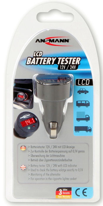 Betrouwbare en nauwkeurige Accu Spanningsmeter voor in de sigarettenaansteker. Met deze tester kun je ook eenvoudig controleren of de Dynamo nog in orde is.