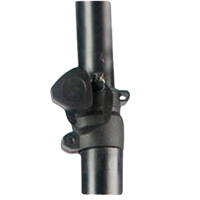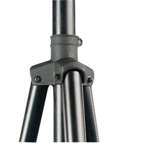 Op dit 3-poot statief is een los bovenstuk geplaatst waaraan de schotelantenne wordt bevestigd. Dit bovenstuk is door een draaiknop vast te zetten zodra de schotelantenne is gericht.
