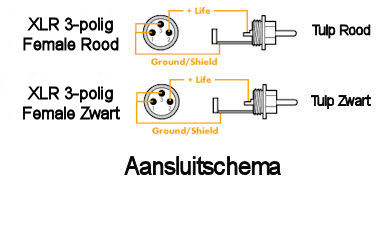 - Hoge kwaliteit pluggen (2x XLR 3-polig Female en 2x Tulp)