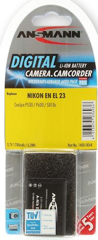 Vervangt: alle Nikon EN-EL23 accu's
