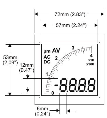 Type display: LCD 3.75 digits 12mm, white digits on black background