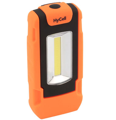 Felle werklamp met magneet, riemclip en uitklapbare standaard.