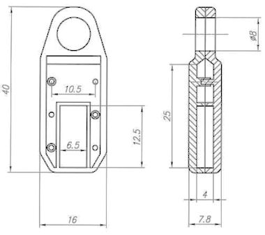 - Buitenmaat: 40 x 16 x 8mm