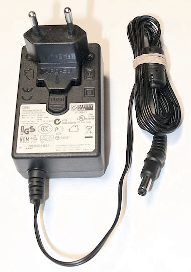 1) De twee pennen die in het stopkontakt gaan zitten op deze voeding geklikt en kunnen eenvoudig verwijderd worden. Meestal worden ze zelfs los meegeleverd en moet je ze er zelf opklikken. Deze constructie is door de fabrikant bedacht om deze voeding ook in andere landen te kunnen verkopen, er wordt dan een ander opklik deel meegeleverd. De verbinding komt tot stand door twee verende contacten. Deze contacten maken niet altijd goed contact. Dit is echter heel eenvoudig te verhelpen door de verende delen iets omhoog te buigen waardoor ze wat harder drukken. Tot nu toe deden wij dit steeds zelf, en het hielp altijd goed, het kost ons echter te veel tijd om dit bij iedere voeding te controleren.