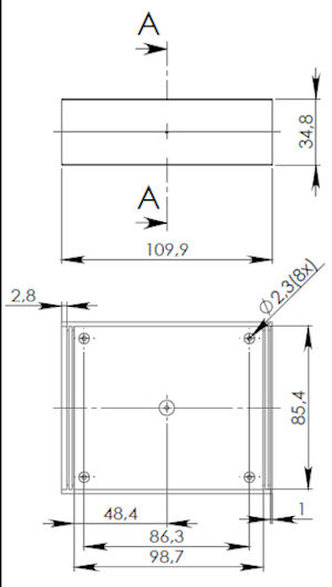 - Buitenmaat ca. 111 x 91 x 35 mm