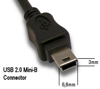 De mini USB plug is ca. 7mm breed en 3,2 mm dik. ( 5 polig ) Zie ook de derde foto.